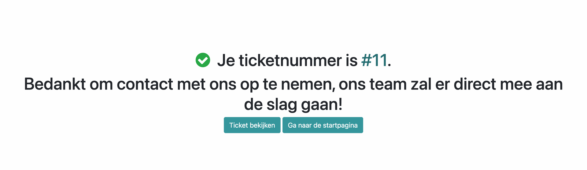 Als bevestiging krijg je het ticket nummer via email en op je scherm.