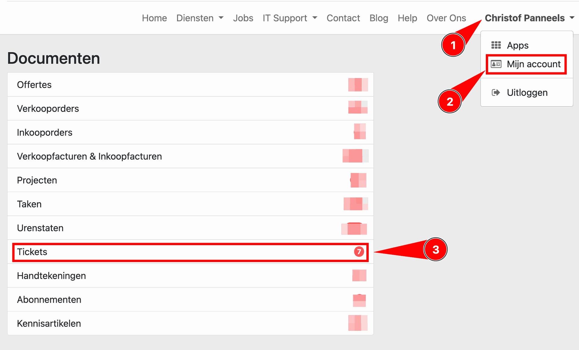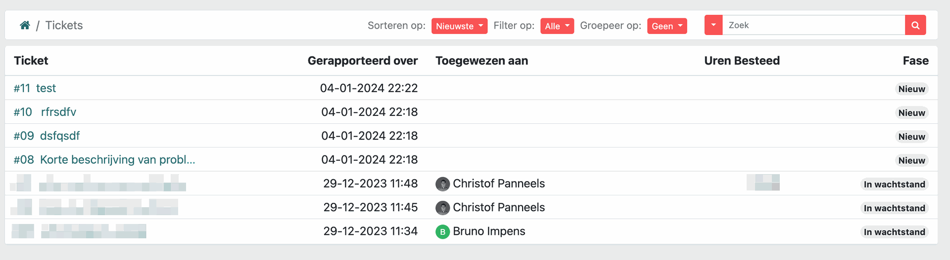 Via dit overzichtje kan je zien wie je ticktje behandeld, in welke fase je ticket zich bevindt of je iets wil toevoegen aan je open ticket(s).